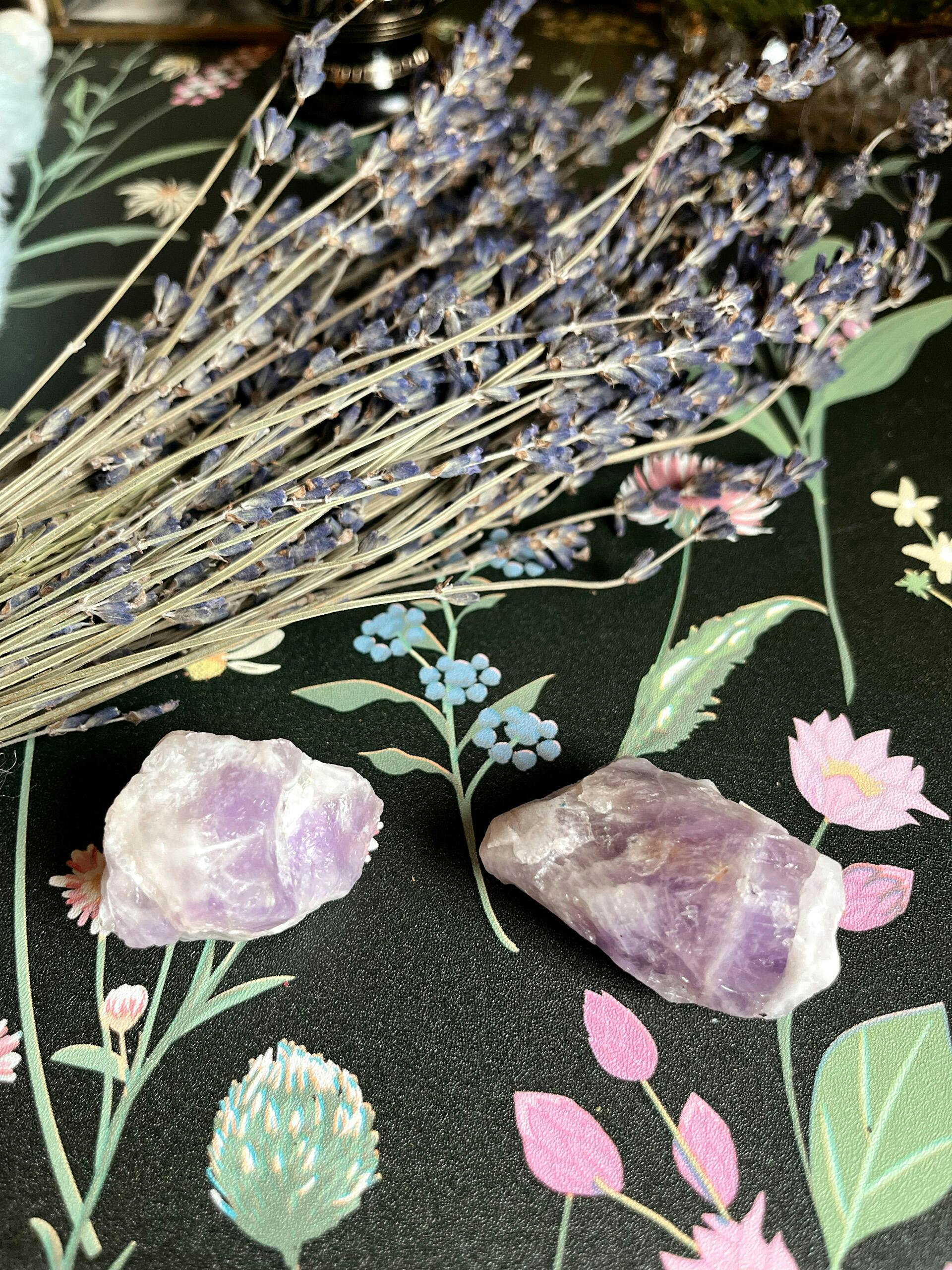 There’s something about the raw crystals that I am so drawn to, I love putting these on my bedside table for the evening and overnight and place them on my altar during the day.